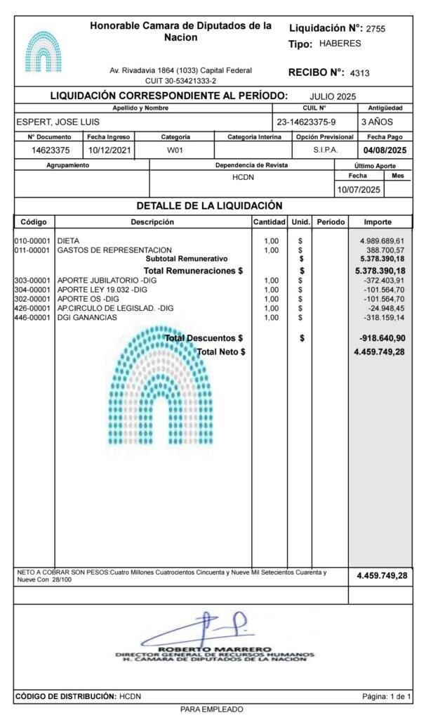 Si hubiera sido sin goce de sueldo, lo debería haber incluido en la nota, aclara la Cámara de Diputados.