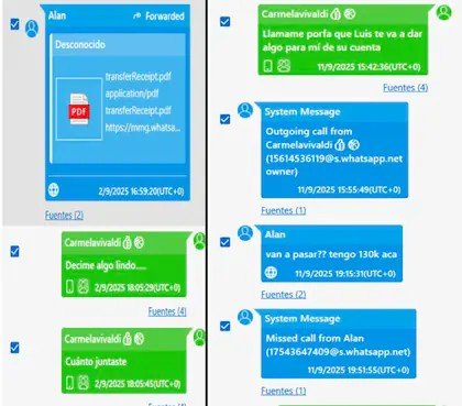 Al momento de pedir las indagatorias, el fiscal citó chats de WhatsApp entre Pocoví y Calvete (agendado con otro nombre) sobre el destino del dinero. “El mensaje que Miguel Ángel Calvete le envía consultándole cuánto dinero había reunido, permite presumir que Alan sería una de las personas a cargo de la recaudación de fondos y/o de las maniobras tendientes al blanqueo del dinero proveniente de las ganancias indebidas, obtenidas en el ámbito de ANDIS”, dice el dictamen.
