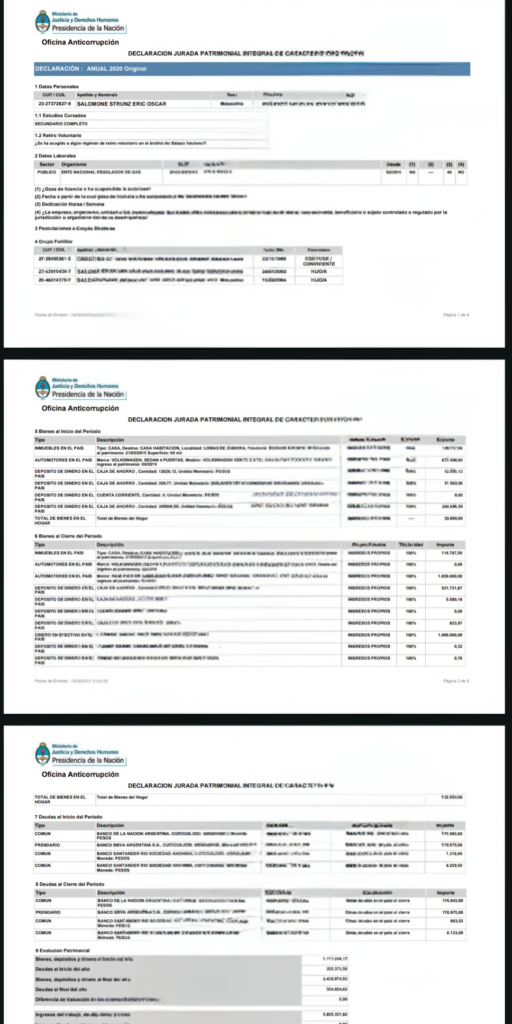 El dato central que emerge del nuevo documento es la existencia de un “crédito significativo otorgado por persona física identificada como Salvador Bello, sin condiciones claras ni entidad financiera interviniente”. La referencia no es menor: se trata de un préstamo por más de 70 millones de pesos que figura en la declaración jurada rectificativa del funcionario, vinculado a la adquisición de un departamento en la Ciudad Autónoma de Buenos Aires.