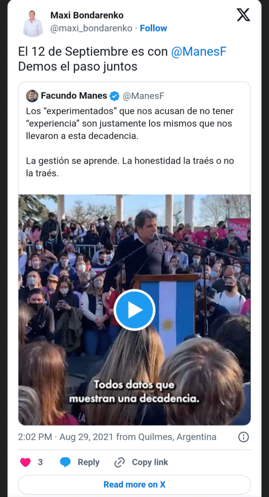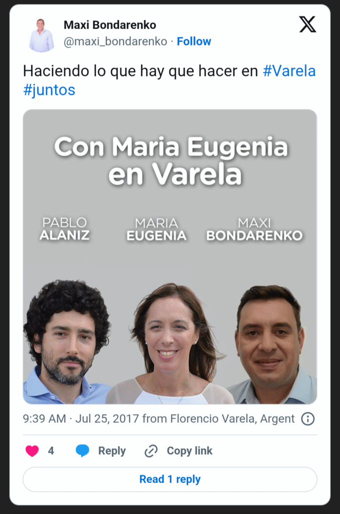 Cuando Maximiliano Bondarenko estrenó su cuenta de usuario en la exTwitter ahora X el 9 de mayo de 2017 lo hizo con un solo objetivo: meterse de lleno en la campaña de medio término en la que CAMBIEMOS daría la batalla legislativa en la provincia de Buenos Aires.