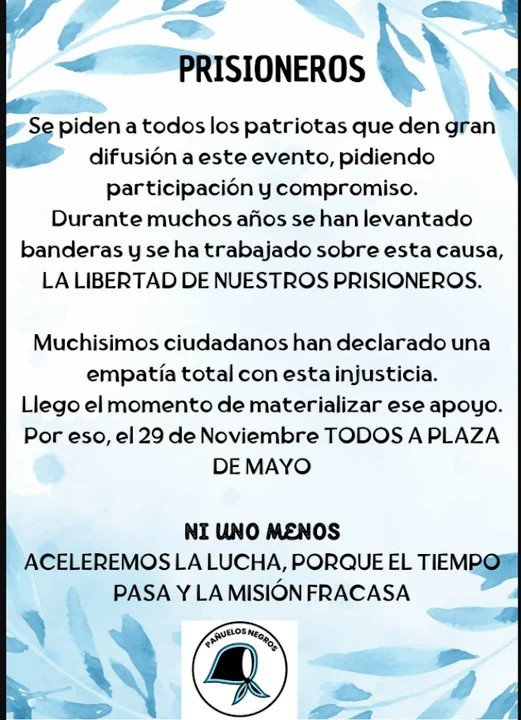 A días de asumir, algunos se avivaron rápidamente de que posiblemente ese reclamo que creían de ejecución inmediata, iba a demorar o bien, no suceder nunca. Así fue como un grupo de mujeres entre las que se cuenta a Lucrecia Astiz -hermana del “Ángel Rubio”– y a Marta Ravasi de Olivera -esposa del “Carnicero de San Juan”– lideradas por Cecilia Pando, hicieron pública una carta en el correo de lectores del diario “La Nación” a veinte días de asumido el nuevo gobierno, reclamando el pronto indulto de los criminales presos, a fin de que puedan pasar las fiestas de fin de año en familia y en sus casas. No sucedió.