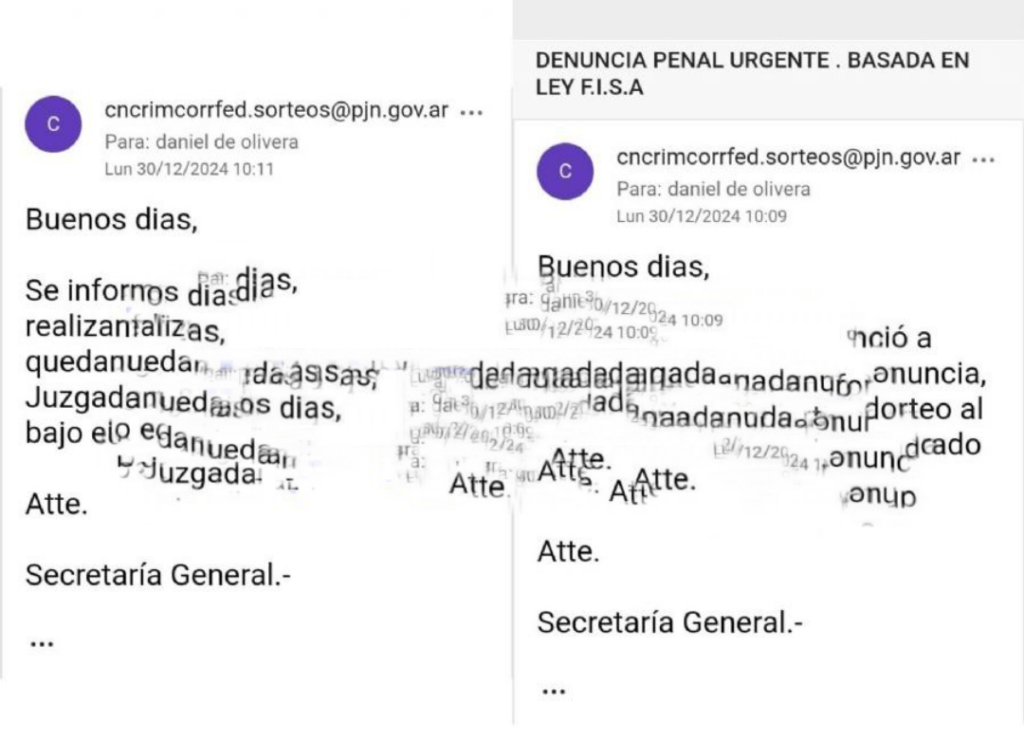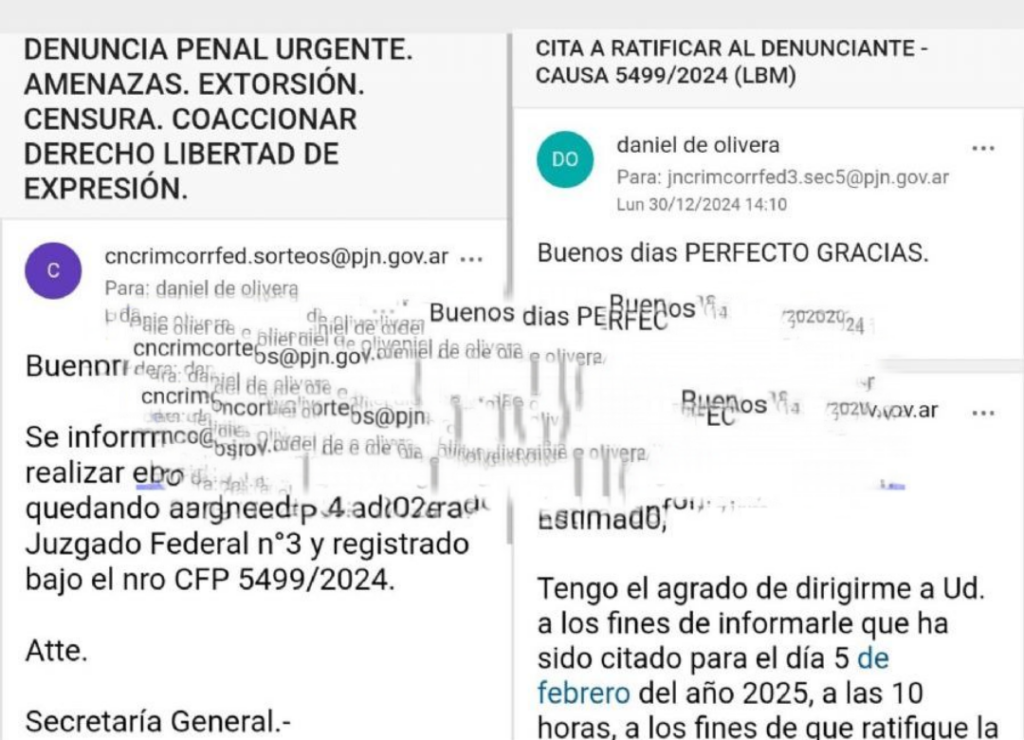 Correos sobre presentación de denuncias en la Justicia Federal