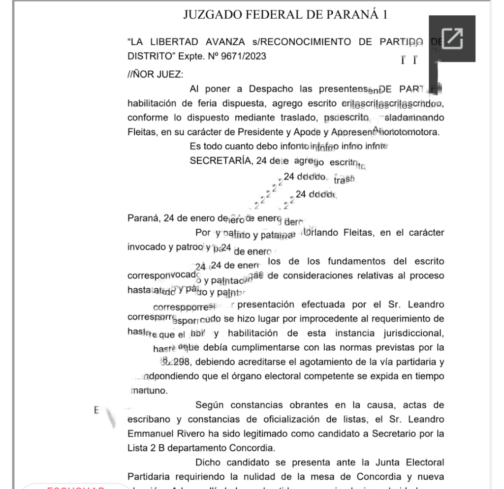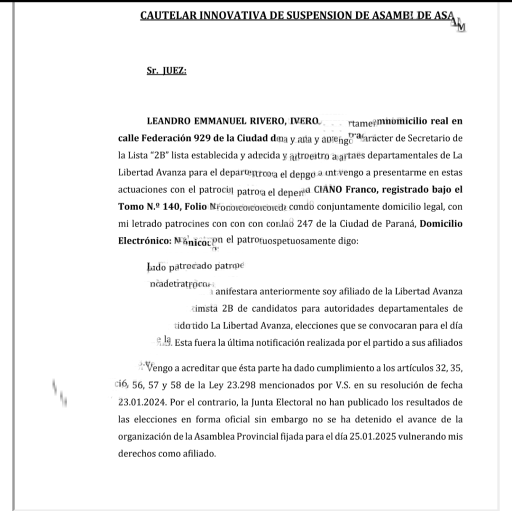 Dirigentes de La Libertad Avanza de Entre Ríos arribaron a la Justicia y pidieron la suspensión de la asamblea provincial. Los motivos.