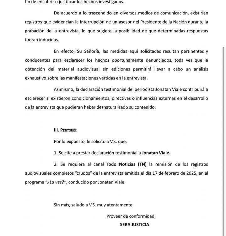 Un reconocido y mediático abogado pide que el fanático del lácteo oficialista y pseudo periodista, Jonatan Viale, declare ante la Justicia y que TN entregue el material sin ediciones