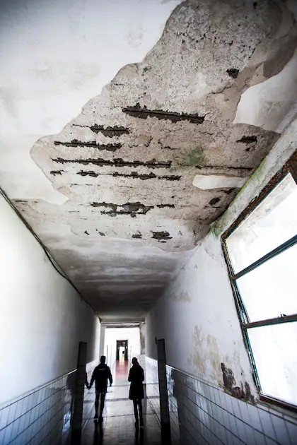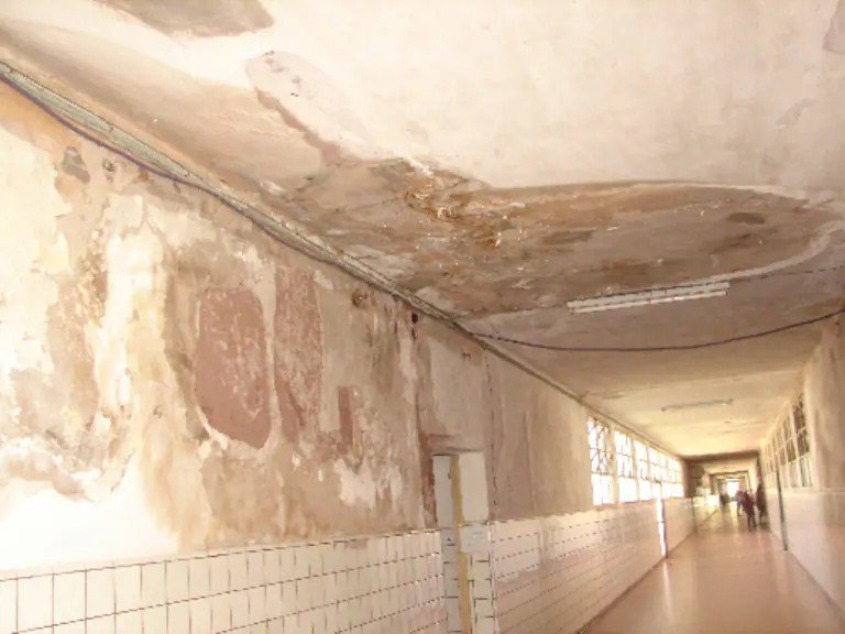 Filtraciones que chorrean sobre instalaciones eléctricas, cables expuestos, escombros regados por el piso y falta de limpieza, de mantenimiento y de medidas de seguridad.