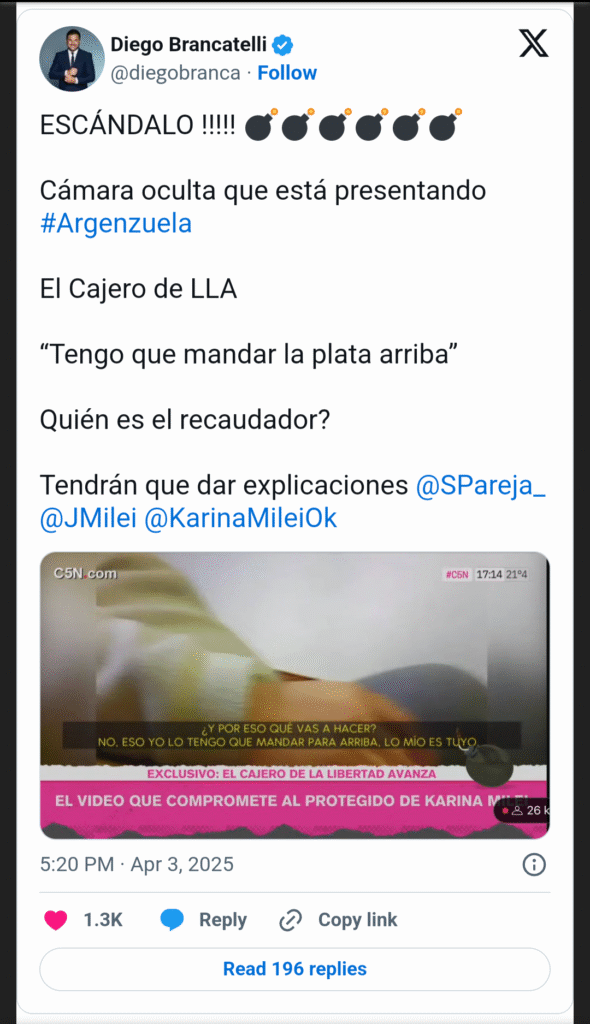 En Misiones, Adrián Nuñez, presidente provincial de LLA y protegido de Karina, fue acusado por 22 funcionarios de orquestar un sistema de “diezmos” que canalizaba fondos a cuentas personales, como la de Cristian Sanabria Britez, un joven líder de la Juventud Libertaria que recibió transferencias de hasta 260.000 pesos.