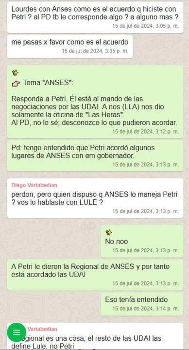 Como se aprecia en las conversaciones -a las Enclave-Arg .online accedió en exclusiva- la diputada, por caso, insistió con que su hermano era el más idóneo para liderar RENAPER, algo que finalmente no logró. Arrieta cargaba, por entonces, con denuncias por también afiliar personas muertas al partido, para lograr el sello partidario en la provincia, algo que también celebran en esa serie de chats.
