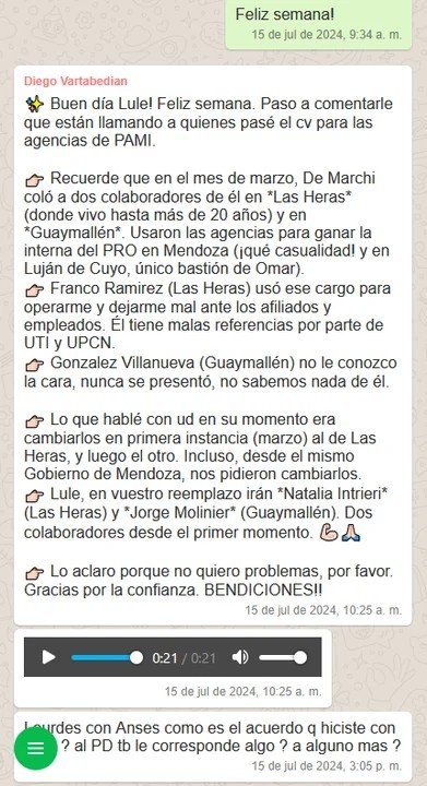 Chats filtrados, revelados por el periodista Manu Jove en X, muestran a Mario Pérez Miranda, aliado de Nuñez, coordinando depósitos con mensajes como “están avisados”. Nelli Guerrero, titular de ANSES en Eldorado, y Samantha Steckler, directora de PAMI en Posadas, también fueron señaladas por participar en el esquema. El objetivo, según las denuncias, era financiar la campaña de LLA para las elecciones provinciales de junio de 2025.