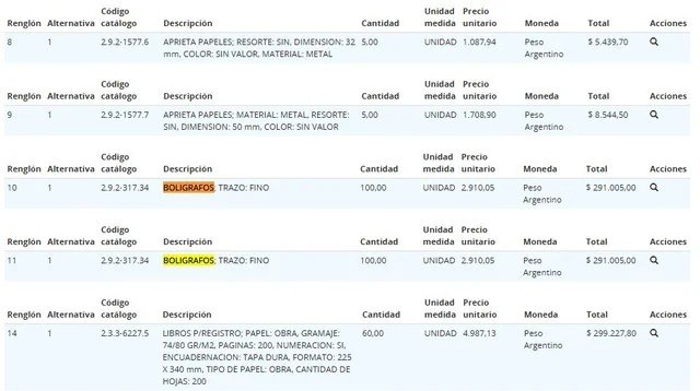 - $3,3 millones en servilletas de papel de 18×18, a razón de casi $14 mil cada paquete, cuando en las plataformas de compra y venta online se pueden conseguir a $7.300 cada uno.