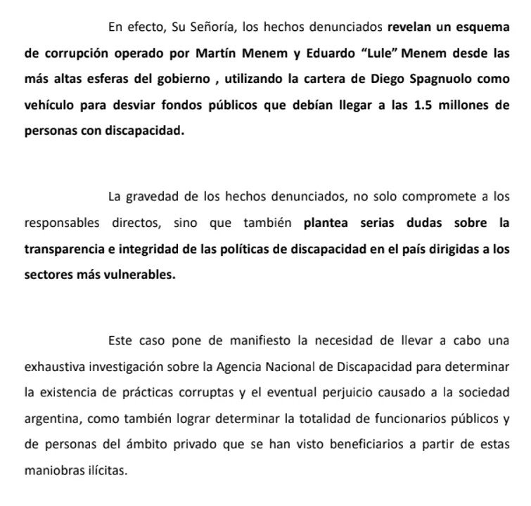 La explicación que brinda cuenta con detalles sorprendentes: habla de “pagos de proveedores” que ofician de “peaje” para acceder a contrataciones directas, menciona empresas, nombres, montos y refiere como los responsables de las maniobras irregulares a la poderosa Secretaria General de la Presidencia Karina Milei y a sus dos adláteres preferidos: Martín y Eduardo “Lule” Menem.
