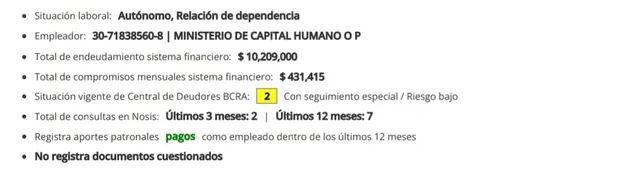 El reporte, emitido por la consultora NOSIS y basado en datos del Banco Central y la AFIP, ubica a Cifelli en categoría 2 del BCRA, lo que implica una situación bajo “seguimiento especial” por riesgo leve de mora.