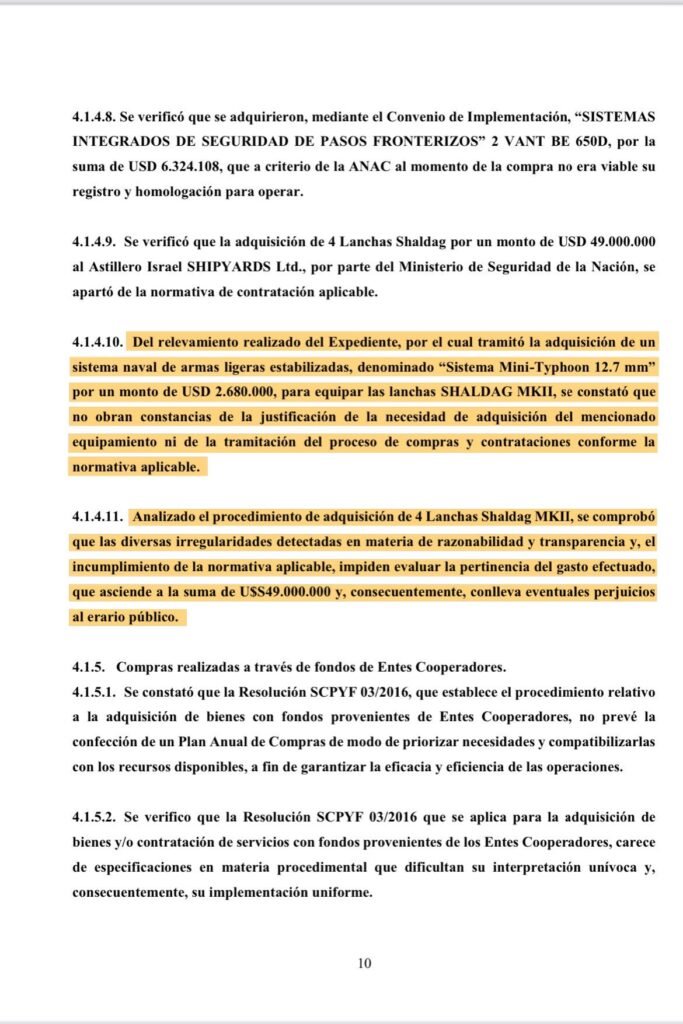 En cuanto a las lanchas, la Facultad de Ingeniería de la UBA determinó que las cuatro embarcaciones Shaldag costaron un 138 por ciento más que su valor real, con un sobreprecio de siete millones de dólares por cada una.