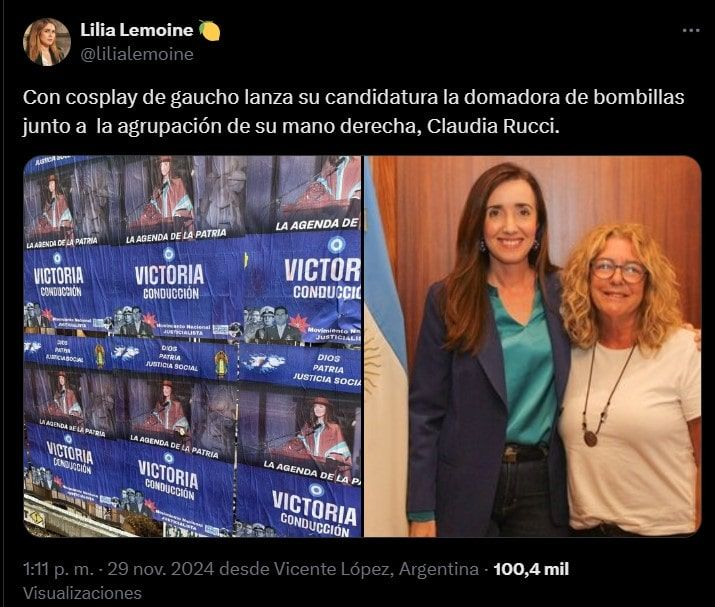 La legisladora respondió a un usuario en X (anteriormente Twitter) que cuestionó la reunión de Villarruel con Isabel Perón, expresando su desconfianza hacia quienes idolatraban a la ex presidenta: «Ninguna persona que idolatre a Isabel Perón me genera la más mínima confianza. Vengan de a millones», escribió. A esto, Lemoine añadió: «Te banco. Va juntando porotos la vice. Hace rato se decidió. Ya es la peor vicepresidenta de la historia», comparando a Villarruel con Carlos «Chacho» Álvarez, quien renunció a la vicepresidencia durante la gestión de Fernando de la Rúa. «Peor que el ‘Chacho’, porque no llegó colgado de las bolas de De la Rúa», remarcó.