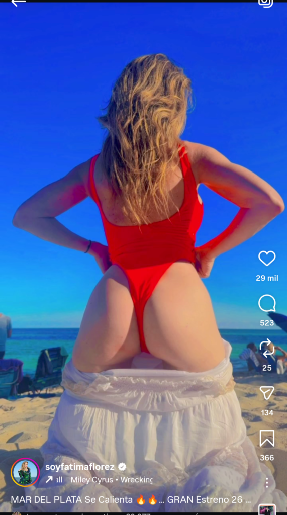 Horas más tarde, Florez subió la imagen que encendió las redes: se la ve refrescándose y cubriendo su cuerpo con recursos gráficos, una elección que algunos celebraron como empoderamiento y otros cuestionaron por “excesiva”. Lejos de retroceder, la publicación reforzó su perfil provocador y volvió a instalarla entre las tendencias del verano.