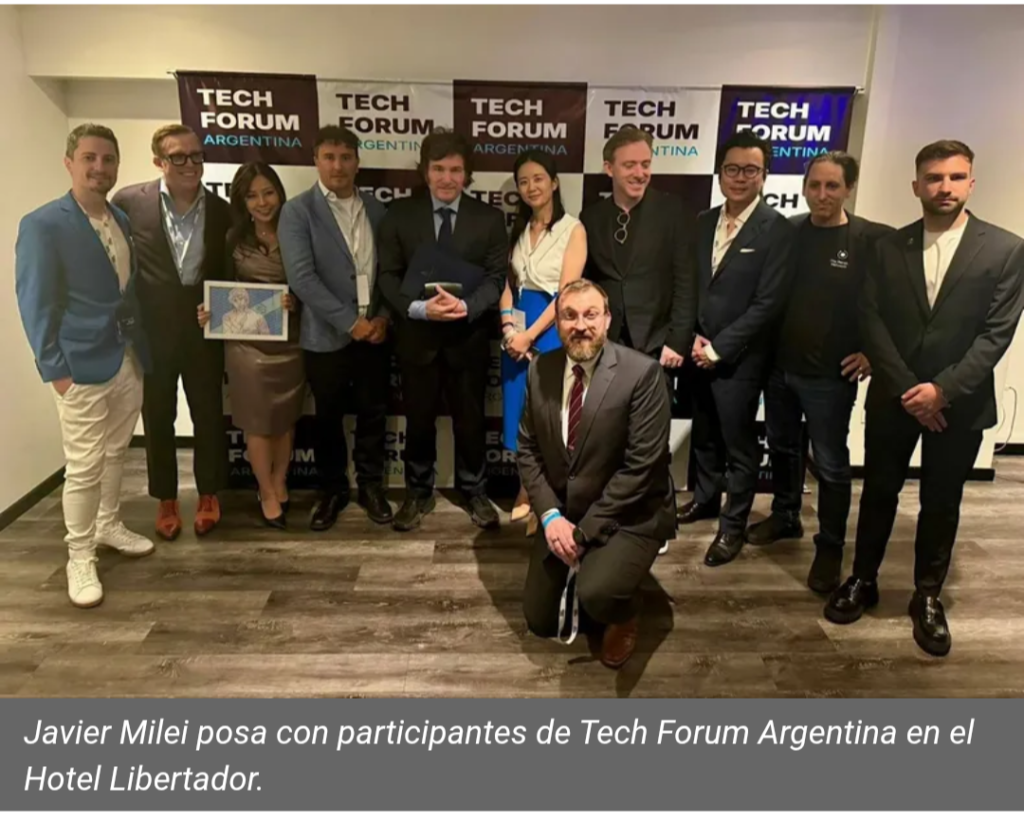 Milei y Adorni llegaron a ese lugar porque se realizaba el Tech Forum Argentina, un evento privado que tenía el auspicio del gobierno nacional y que tuvo al Presidente como orador, junto a Demian Reidel, entonces jefe de Gabinete del Consejo de Asesores del Presidente, y Roberto Silva, presidente de la CNV.