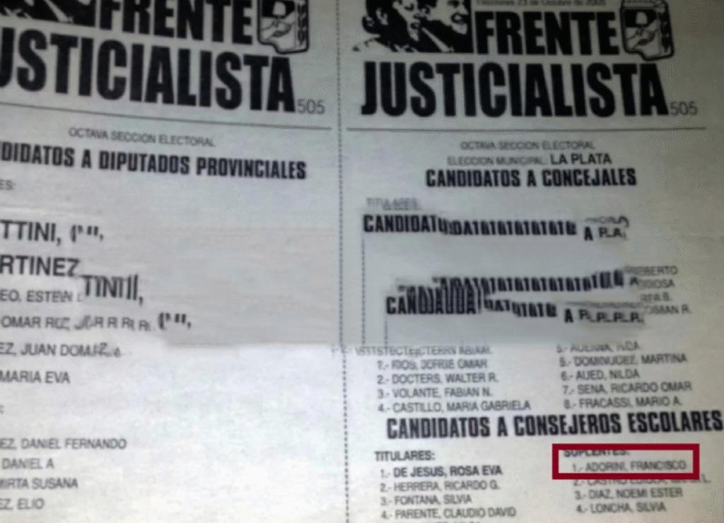 El hallazgo generó sorpresa entre los seguidores de Javier Milei, al revelar que Adorni estuvo afiliado al Partido Justicialista (PJ) y participó en una lista electoral del Frente Justicialista en calidad de candidato suplente a consejero escolar.