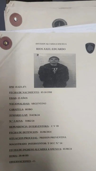 Axel Eduardo Ríos (25 años): argentino, también con prisión preventiva por robo agravado.