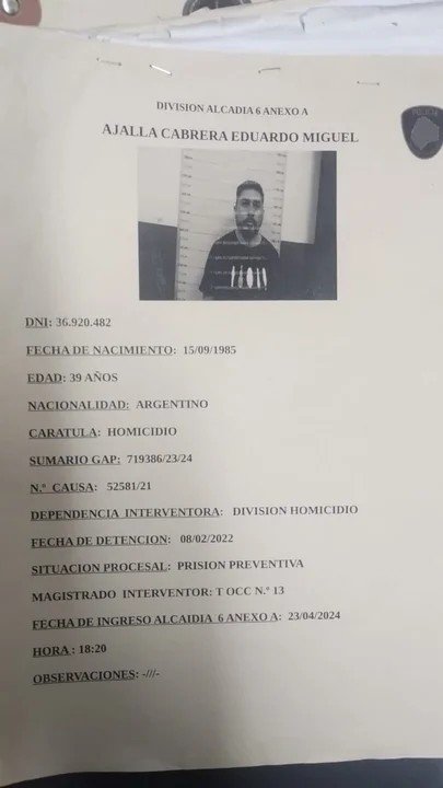 Entre los fugados está Eduardo Miguel Ajalla Cabrera, alias “Calabaza”, un barrabrava del club Atlanta acusado del asesinato del financista Carlos Walter Molina en noviembre de 2021. Ajalla Cabrera estuvo prófugo durante dos años hasta que lo capturaron en diciembre de 2023, mientras intentaba cruzar a Brasil. El Ministerio de Seguridad ofrecía 3 millones de pesos de recompensa por su captura.