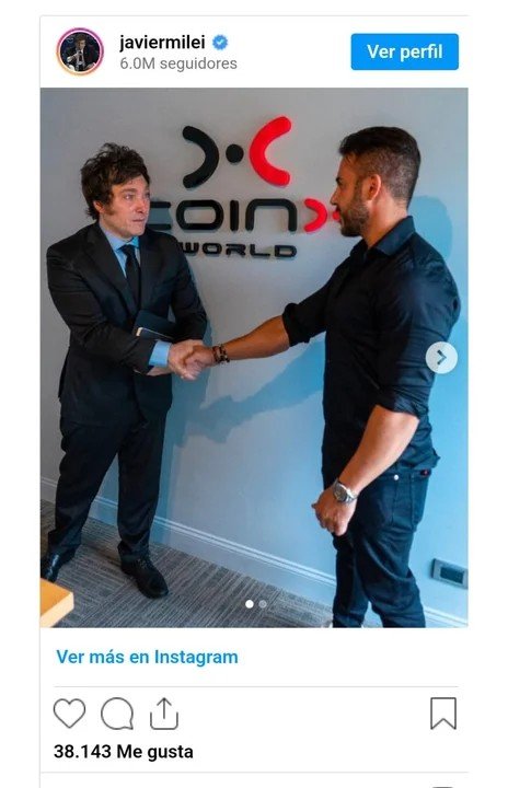 “Escríbanles Coinx World de parte mía así los asesoran con lo mejor!”, agregó en el post que al menos hasta este pasado domingo mantenía en su feed.