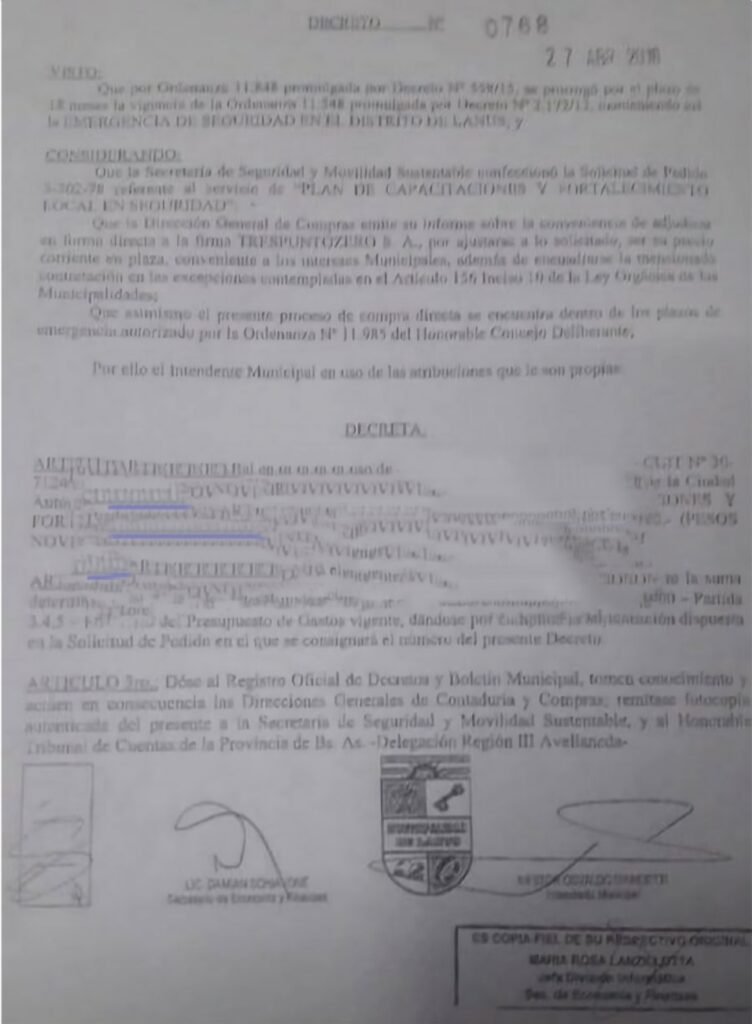 El decreto de Lanús donde “ganó” Trespuntozero