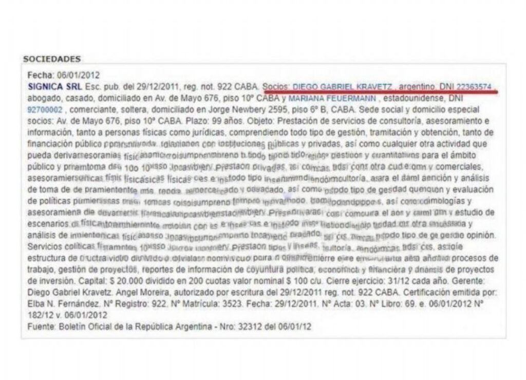 Según pudo averiguar Enclave-Arg, Kravetz habría sido pieza clave en un esquema de contratación direccionada a través de la creación de empresas fantasma. Uno de los casos más resonantes es el de Signica SRL, una consultora fundada por Kravetz y una colaboradora cercana, que obtuvo contrataciones directas por más de 4 millones de pesos en solo dos años, pese a su mínima estructura y falta de antecedentes.