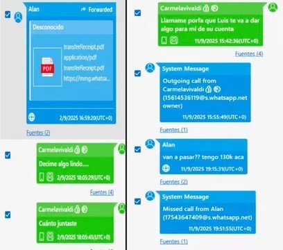 - A comienzos de septiembre, Pocovi le reenvía el recibo de una transferencia a Calvete, quien aparece agendado con su seudónimo “Carmela Vivaldi”. El lobbysta responde con la ironía de quien se cree impune: “Decime algo lindo… ¿Cuánto juntaste?”.